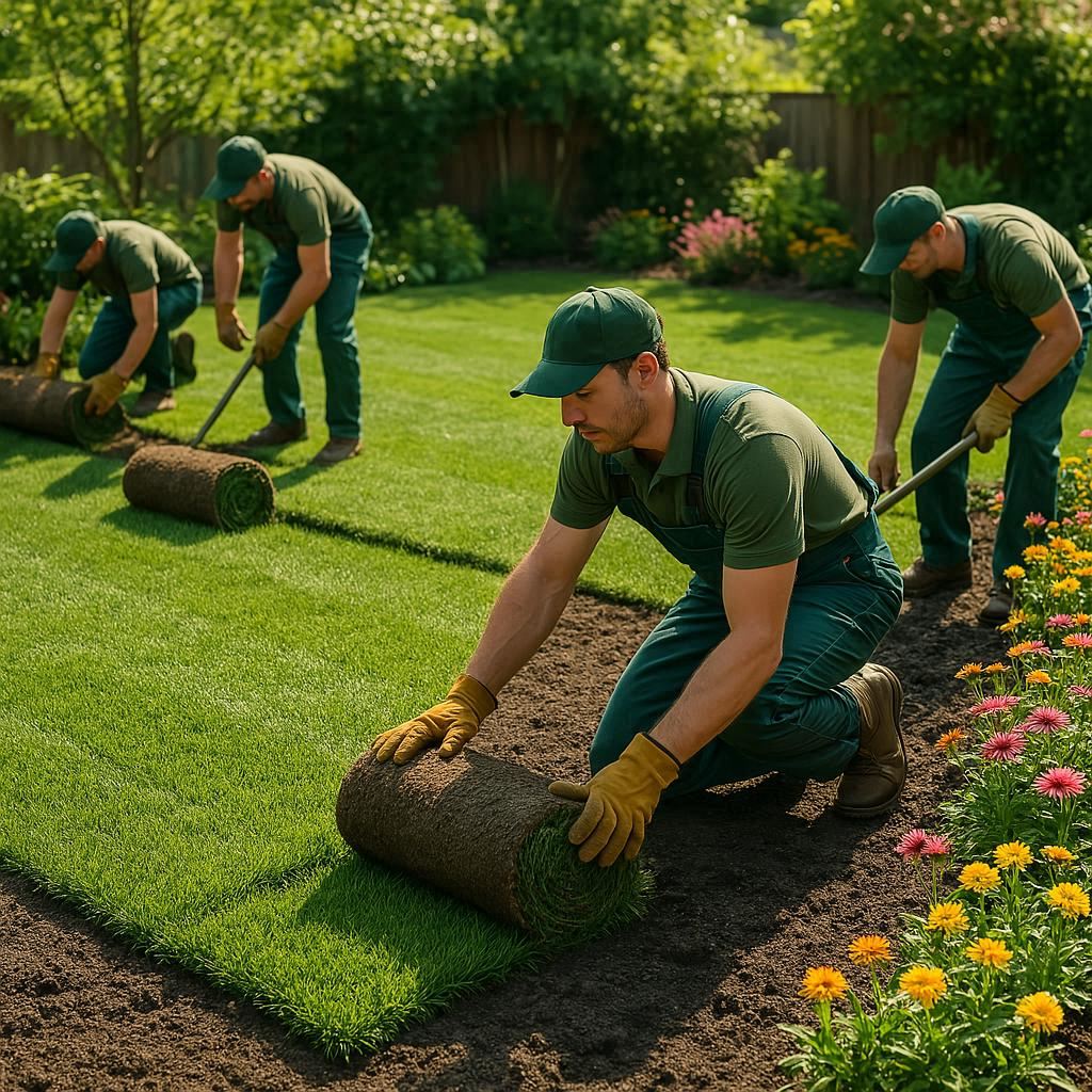 Instalación de pasto en rollo